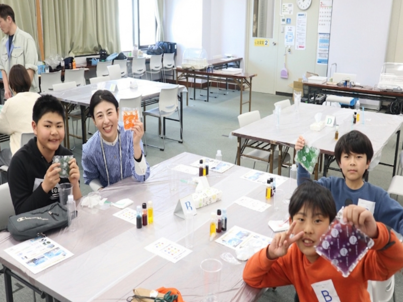 地元・松阪市に本社を置く三重化学工業株式会社の水谷啓道氏を講師に迎え、オリジナルの保冷剤作りを体験しました。児童たちは、身近な保冷剤に隠された化学反応のプロセスを楽しみながら、地元企業が持つ高度な技術を体感。色鮮やかな自分だけの作品を完成させ、地域の産業やものづくりの奥深さに触れる貴重な機会となりました。